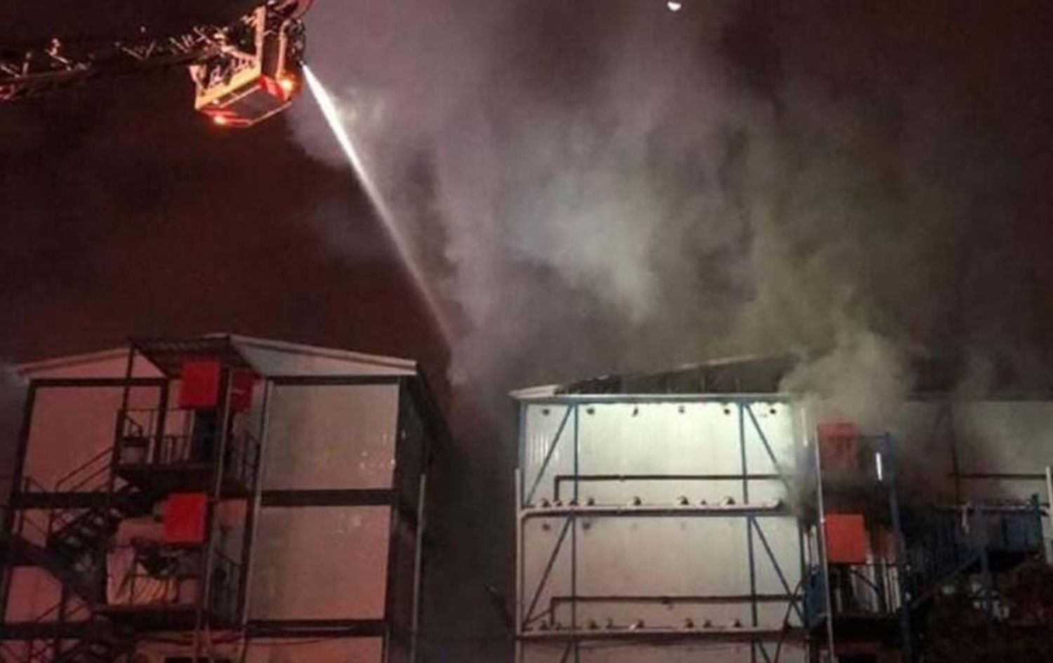 İtfaiyenin müdahalesi tamamlandıktan sonra inceleme yapan ekipler, konteyner evlerde 1 işçinin cansız bedenine ulaştı.