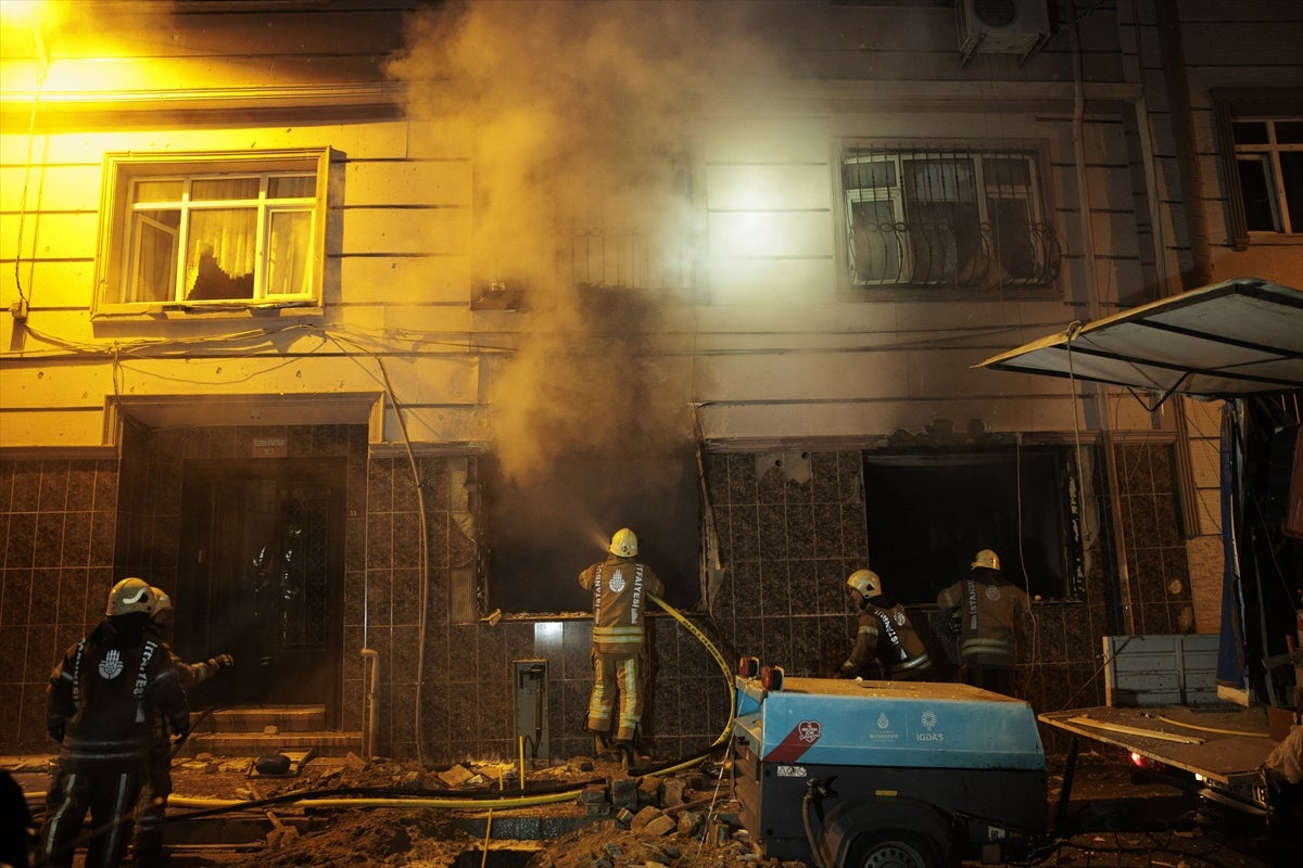 Patlamanın ardından çıkan yangında alevler, binanın giriş ve birinci katına sirayet etti.