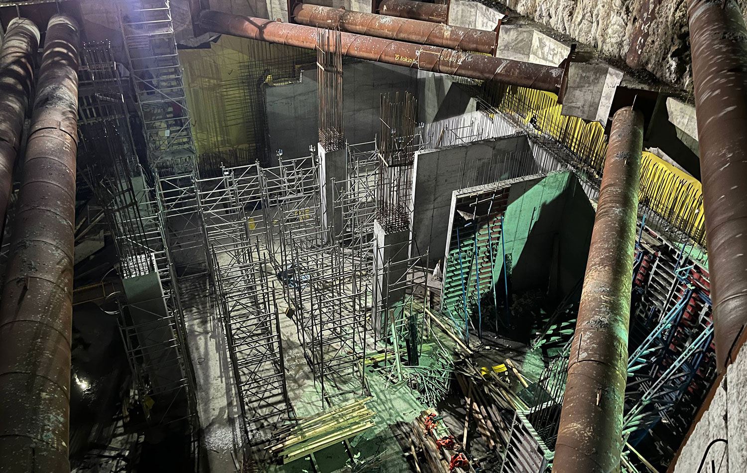 Kabataş İskelesi'nin yanındaki M7 metro hattında yapılan çalışma sırasında, eksi 6. katındaki iskelede çökme meydana geldi. / AA