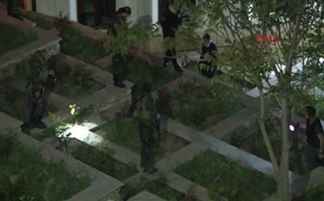 Özel harekat polislerinin bahçede araştırma yapıyor.