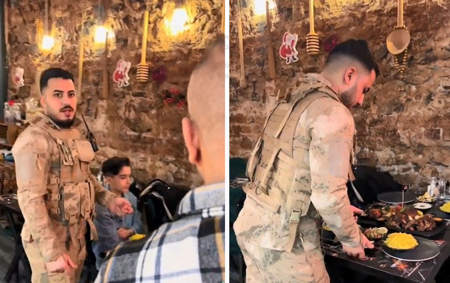 Sosyal medya platformu TikTok’ta lüks bir restoranda asker üniforması giyen bir garsonun yabancı müşterilere servis yaptığı anlar gündem olmuştu.