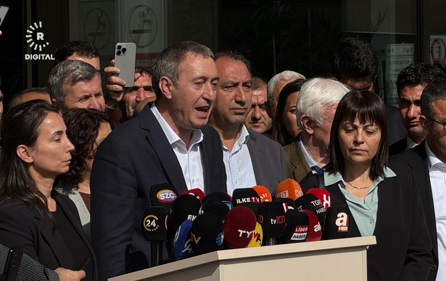 DEM Parti Eş Genel Başkanları Tülay Hatimoğulları ve Tuncer Bakırhan, Önder’in tedavi gördüğü hastanenin önünde gazetecilerle bir araya geldi.