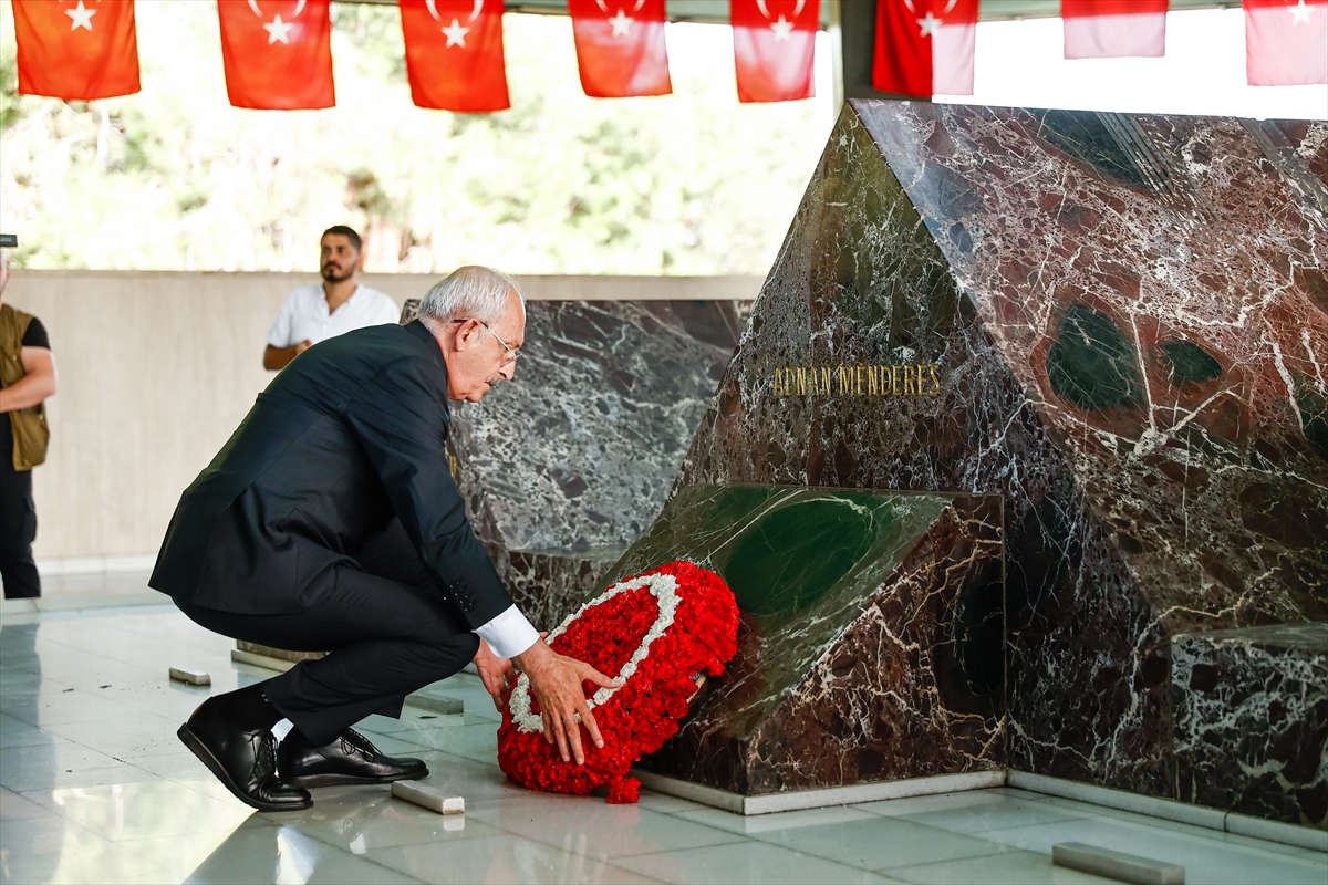 CHP Lideri Kılıçdaroğlu, 27 Mayıs Darbesi’nden sonra Yassıada Yargılamaları sonunda idam cezasına çarptırılıp 17 Eylül 1961’de Bursa’nın İmralı adasında idam edilen eski Başbakan ve Demokrat Parti (DP) Genel Başkanı Adnan Menderes’i mezarını bu sabah ziyaret etti.