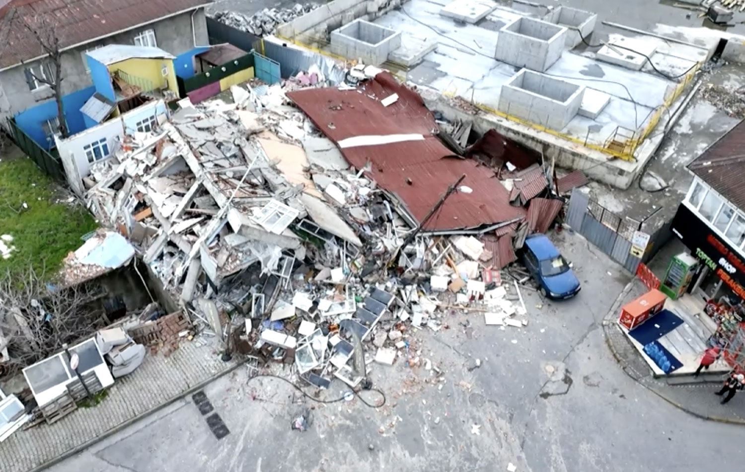Haber Merkezi - İstanbul Ümraniye'de, Göztepe-Ümraniye Metro hattının inşaat çalışmaları sırasında yolda meydana gelen göçük nedeniyle daha önce tahliye edilen bitişik haldeki iki bina çöktü.