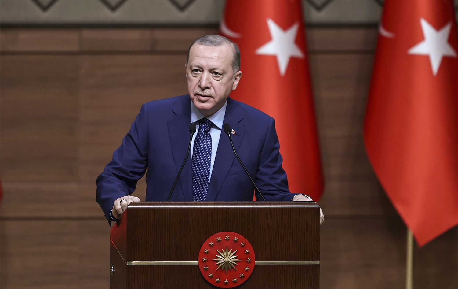 Türkiye Cumhurbaşkanı Recep Tayyip Erdoğan, Cumhurbaşkanlığı Külliyesi'nde gerçekleştirilen Devlet Övünç Madalyası Tevcih Töreninde konuştu.