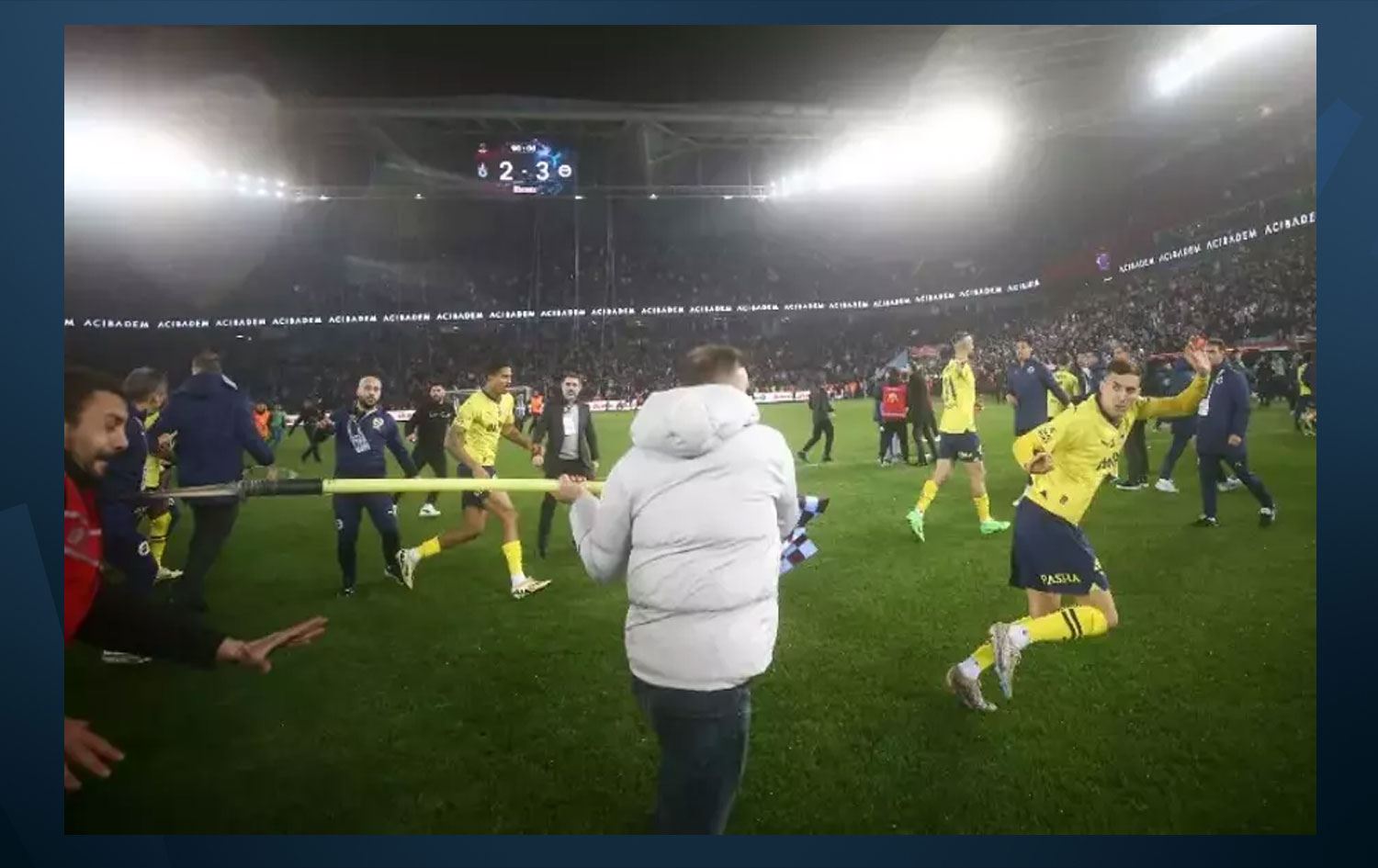 Dün akşam Trendyol Süper Lig'de Trabzonspor ile Fenerbahçe arasında oynanan maçın ardından sahaya atlayan taraftarlar futbolculara saldırdı.