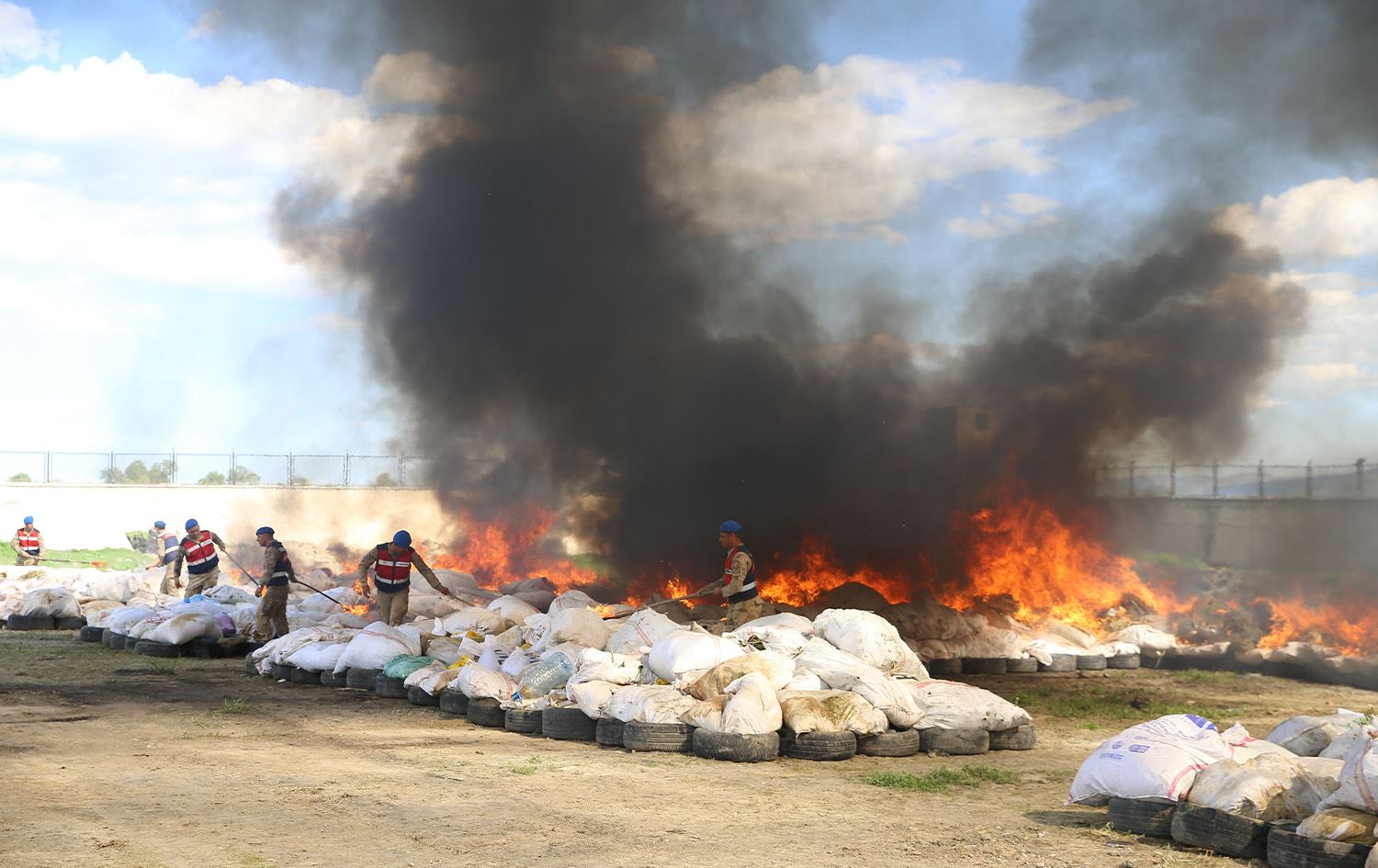 DHA’nın haberine göre, piyasa değeri 10 milyar lirayı bulan uyuşturucu maddeler Diyarbakır Valiliği'nce oluşturulan heyet huzurunda Lice İlçe Jandarma Komutanlığı uyuşturucu madde imha alanında yakılarak imha edildi. Uyuşturucu maddelerin imhası için 200 litre mazot kullanıldı.