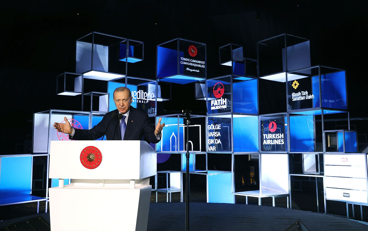 Türkiye Cumhurbaşkanı Recep Tayyip Erdoğan 3. Uluslararası Yeditepe Bienali'nde konuştu.