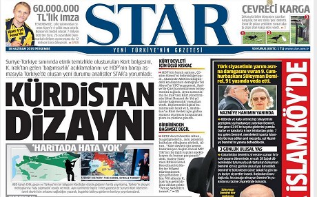 Star gazetesi ise, YPG’in Tel Abyad’ı kontrol altına almasını yorumladı. Gazetenin “Kürdistan dizaynı” başlığıyla verdiği haberde şöyle denildi: