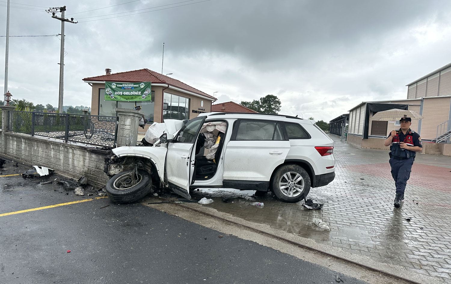 Ada Caddesi'nde seyreden Zafer K. (48) idaresindeki 54 HH 144 plakalı otomobil, Kızılcıkorman mevkisinde sağanak nedeniyle su birikintisinin oluştuğu yolda kontrolden çıkarak mezbaha ve canlı hayvan borsasının bahçe duvarına çarptı.