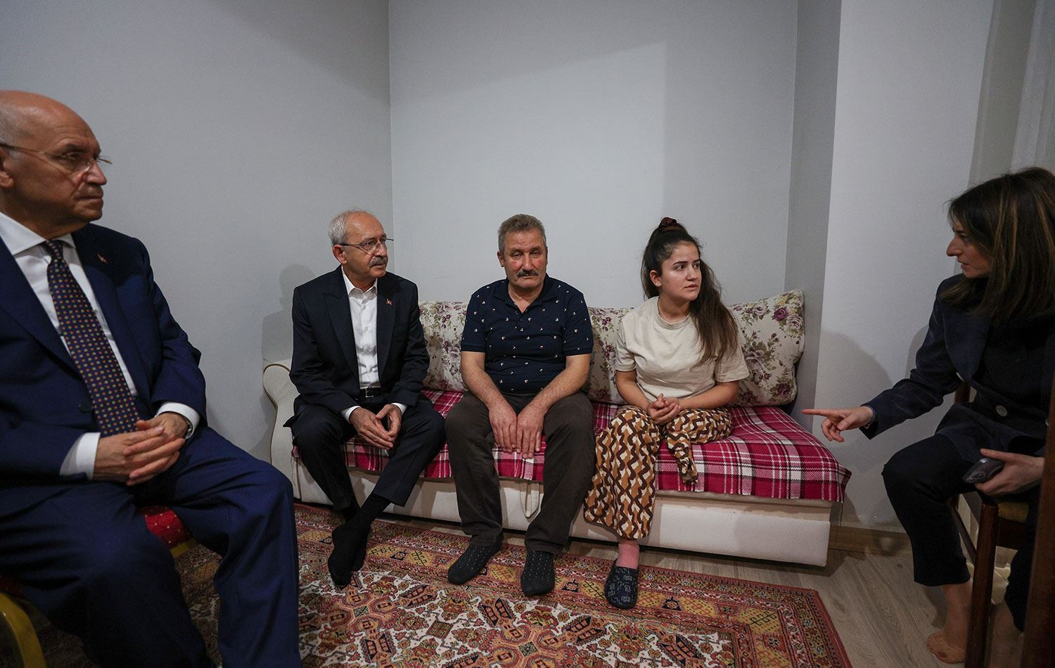 CHP'den yapılan açıklamaya göre, Kılıçdaroğlu, 6 Şubat'ta meydana gelen Maraş merkezli depremlerden etkilenen Hatay Defneli Keremoğlu ve Antakyalı Uçar ailelerini, Babalar Günü dolayısıyla ziyaret etti.