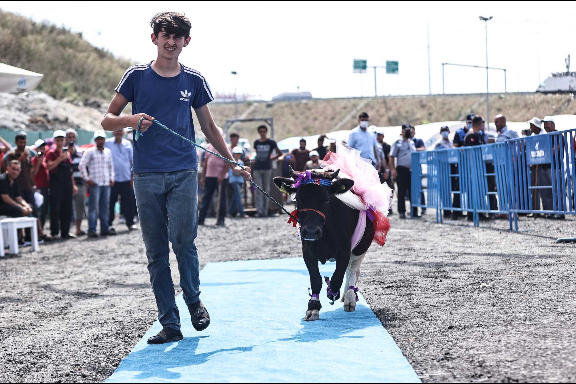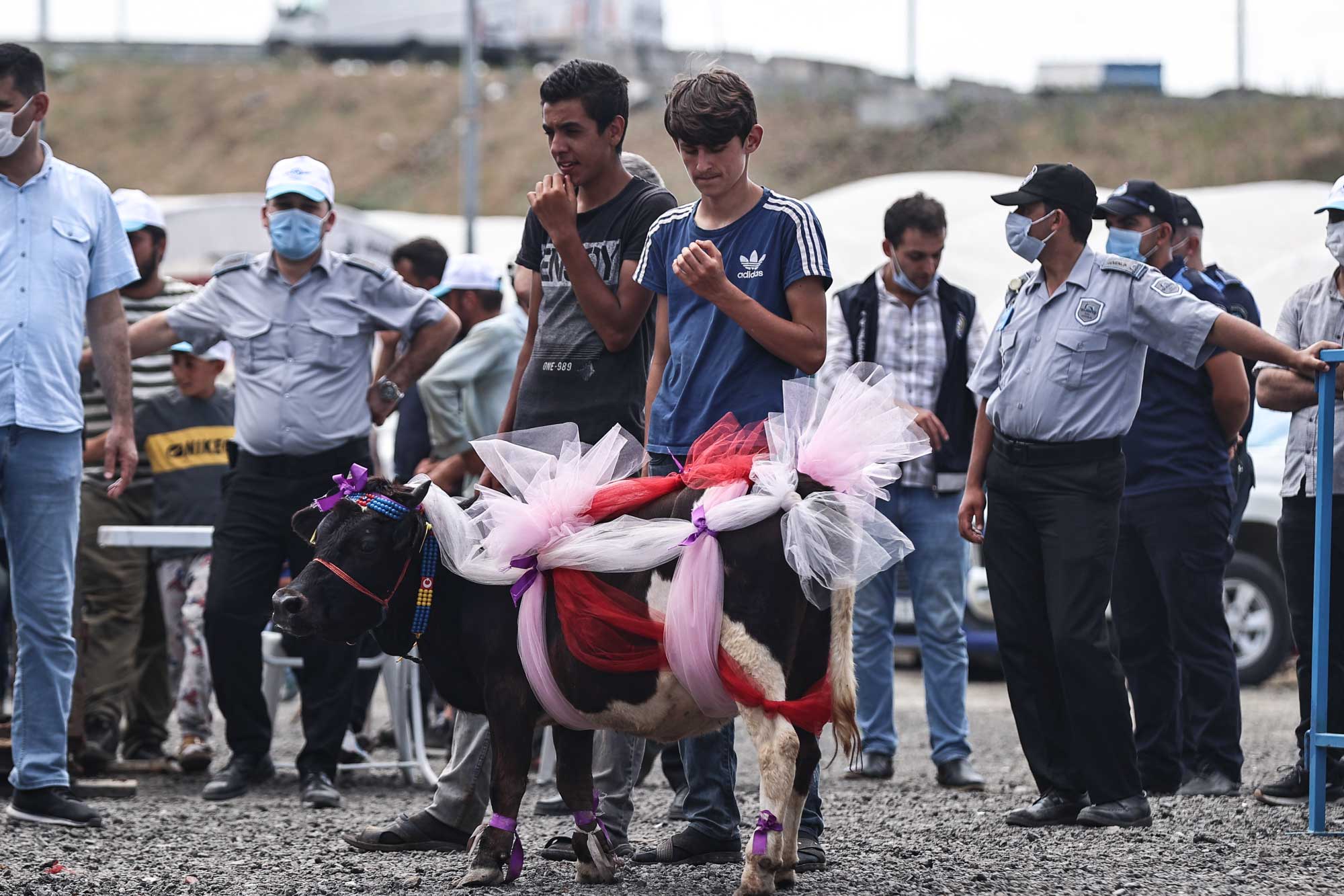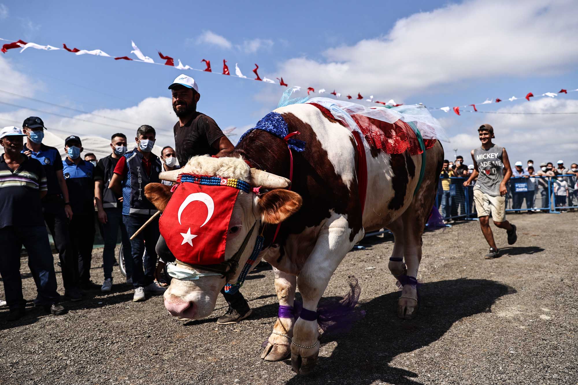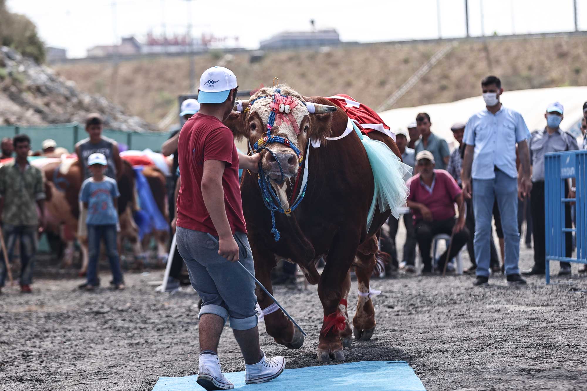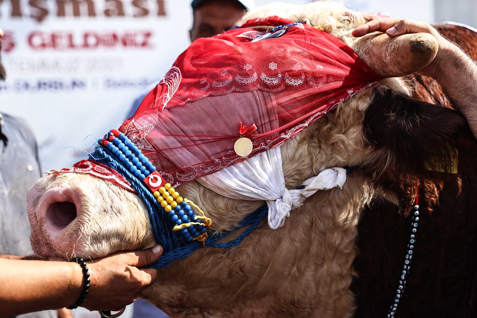 İstanbukl’un Sultangazi ilçesindeki kurban pazarında düzenlenen yarışmada onlarca büyükbaş hayvan, sahipleri tarafından süslendi.