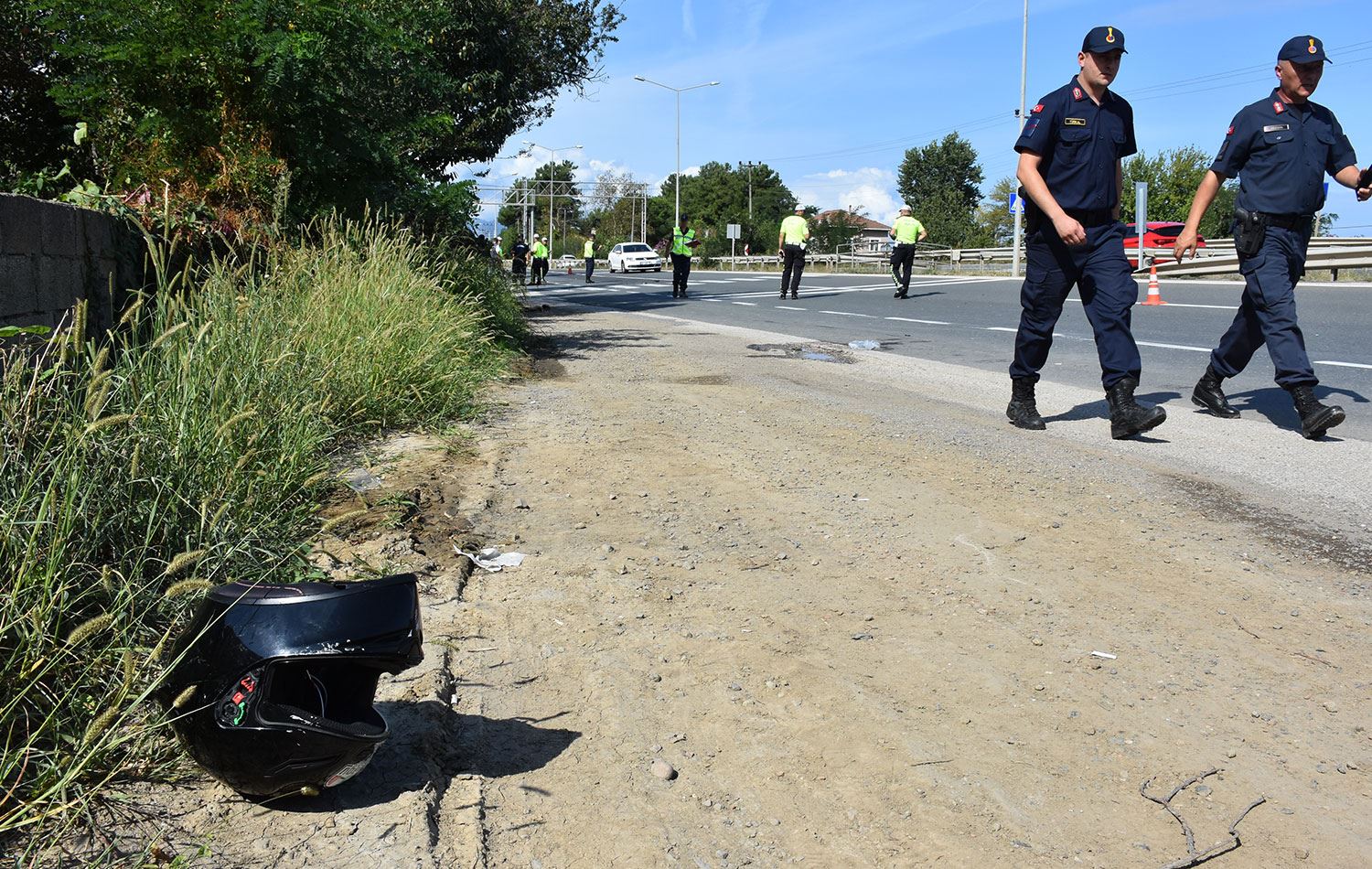 Durmayan motosiklet sürücüsü, yol kenarında bulunan görevli jandarma astsubay çavuşa çarptı.