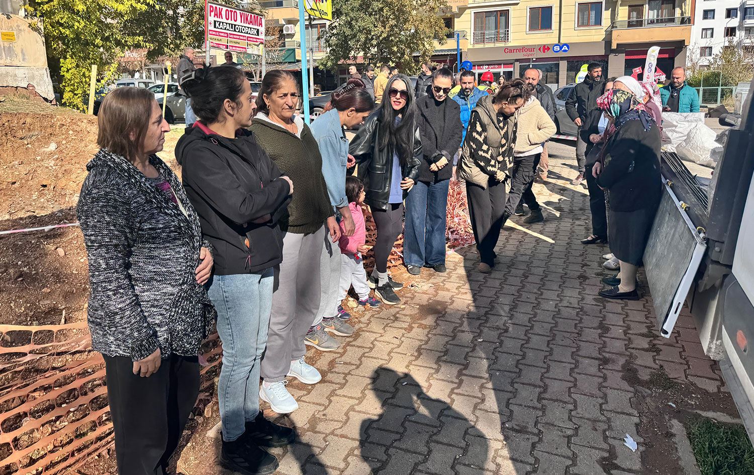 Mahalle sakini kadınların ve çocukların yoğunlukta olduğu tepki sonrası çalışma geçici olarak durduruldu.