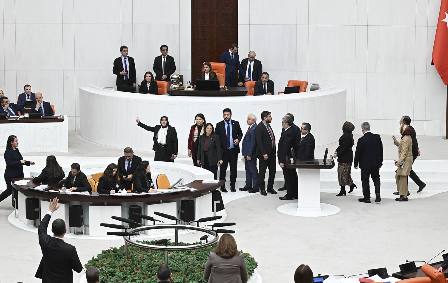 AK Parti Grup Başkanvekili Özlem Zengin (sol başta) dün, partisinin milletvekilleriyle Genel Kurul Salonu'ndan ayrılmıştı. / AA