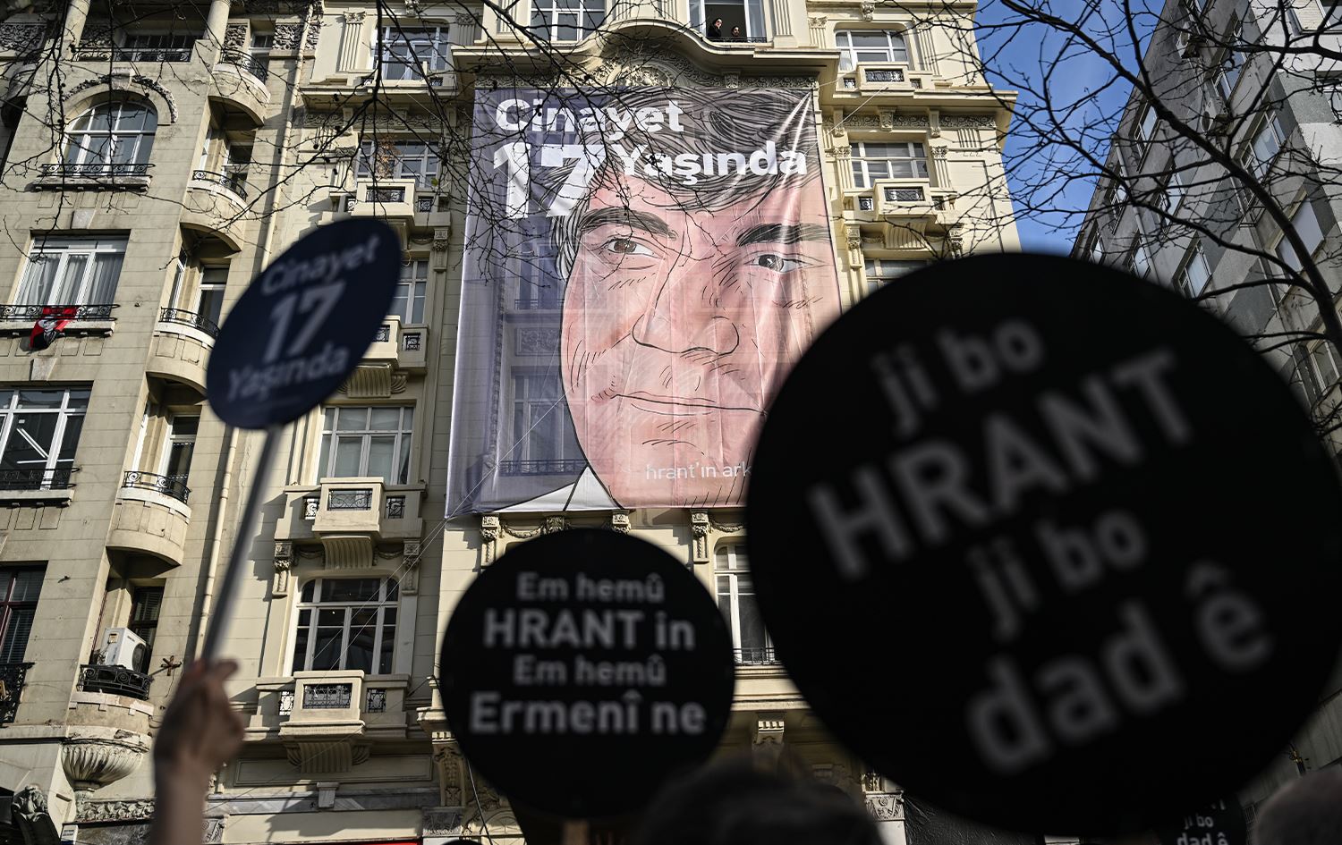 Balkonda konuşan arkadaşı Oya Baydar, özel bir insan olan Dink'in 17 yıl önce katledildiğini hatırlatarak, "Her yıl burada buluşuyoruz, 'Hepimiz Hrant'ız' diye bağırıyoruz. 17 yıldır her 19 Ocak'ta hepimizin içinde doğuyorsun. Selam seninle aynı değerleri paylaşanlara" dedi.