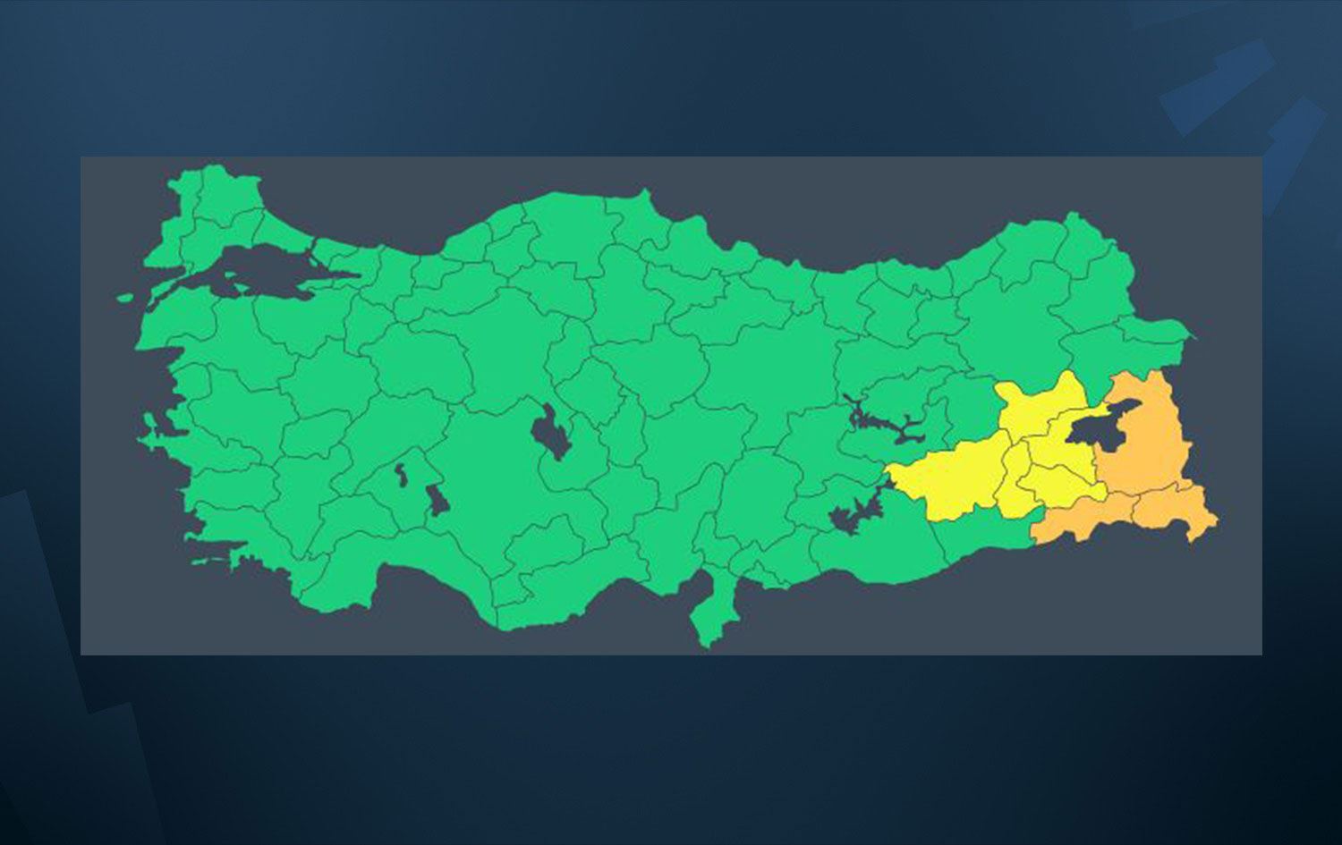 Son rapora göre Bitlis, Hakkari, Siirt, Batman, Diyarbakır, Muş, Van ve Şırnak için, sarı ve turuncu kodlu kar yağışı uyarısı yapıldı.