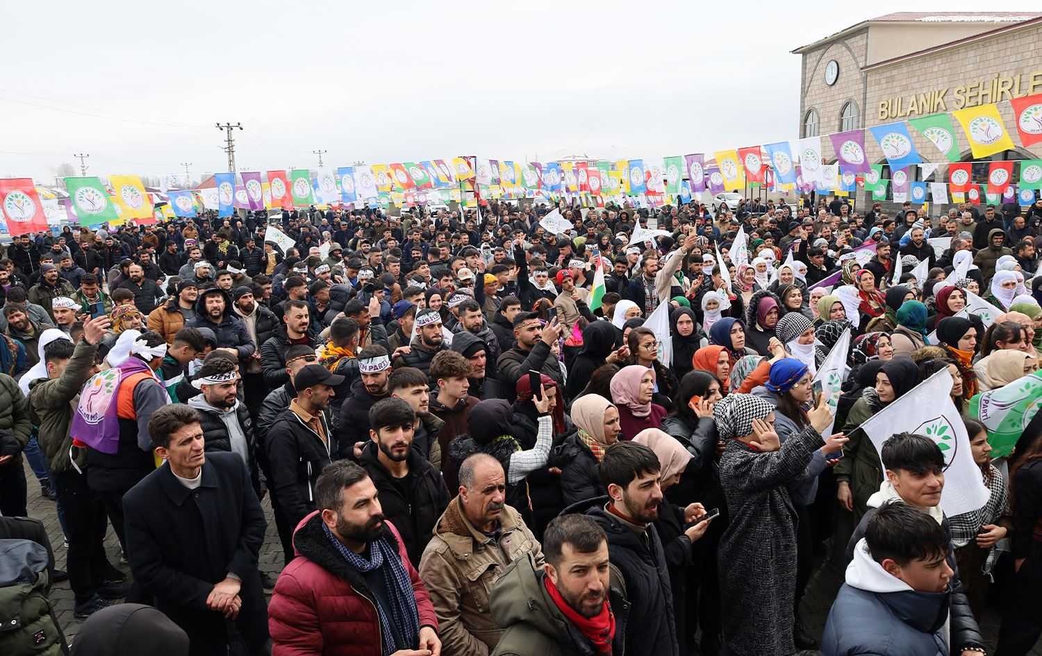 Muş’un Malazgirt ve Bulanık ilçelerinde de olumsuz hava koşullarına rağmen binlerce kişi Newroz kutladı. Malazgirt’teki kutlamaya Sezai Temelli katılırken, her iki merkezde de katılımcılar attıkları sloganlarla taleplerini dile getirdi.