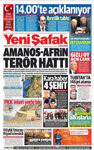 Yeni Şafak: AMANOS-AFRİN TERÖR HATTI