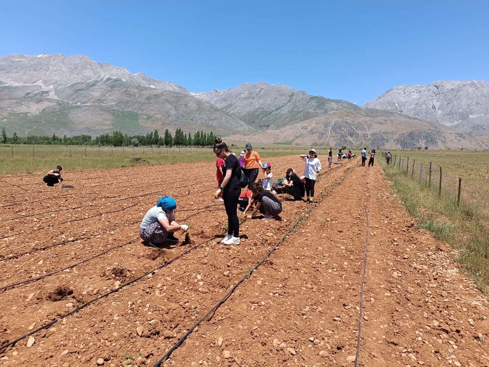 Bostan ekimi öncesi Kırmancki (Zazaca) türkülerini de seslendiren yaşları 5 ile 16 arasında değişen çocuklar ilk kez toprakla buluşmanın sevincini yaşadı.
