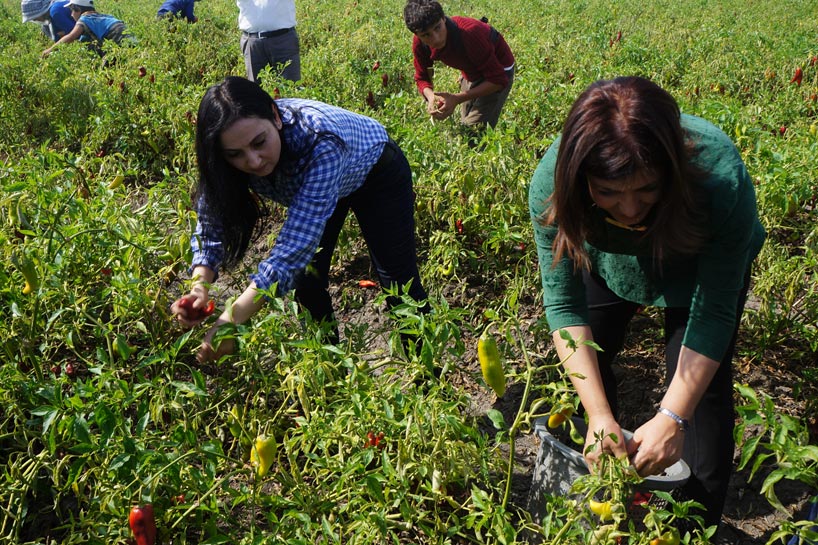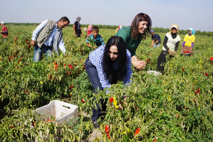 Figen Yüksekdağ, tarım işçileriyle biber topladı
