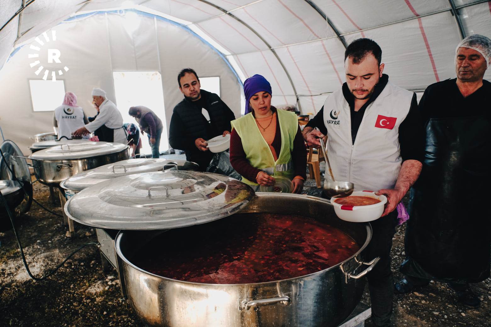 Deprem sonrası bazı alanlarda çadırlar kuruldu. İlçde kurulan aşevleri ise depremzedelere yemek yapıyor.