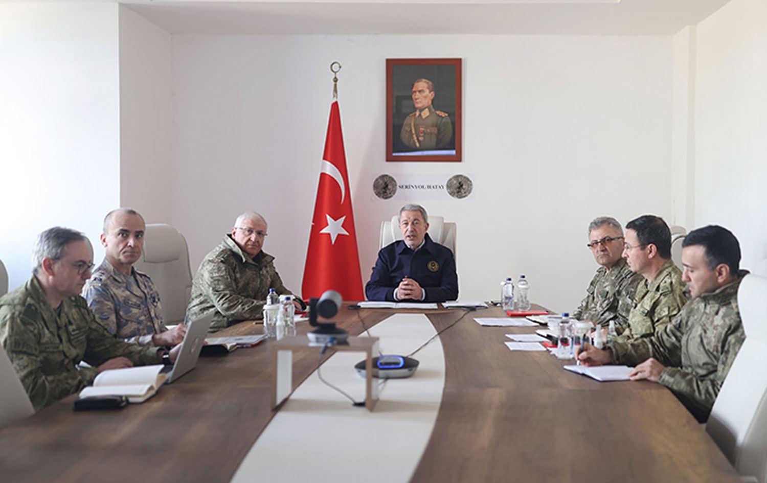 Hulusi Akar, Türk Silahlı Kuvvetleri (TSK) komuta kademesi ile deprem bölgesindeki birliklerin komutanlarının katılımıyla gerçekleştirilen video konferans toplantısında konuştu.
