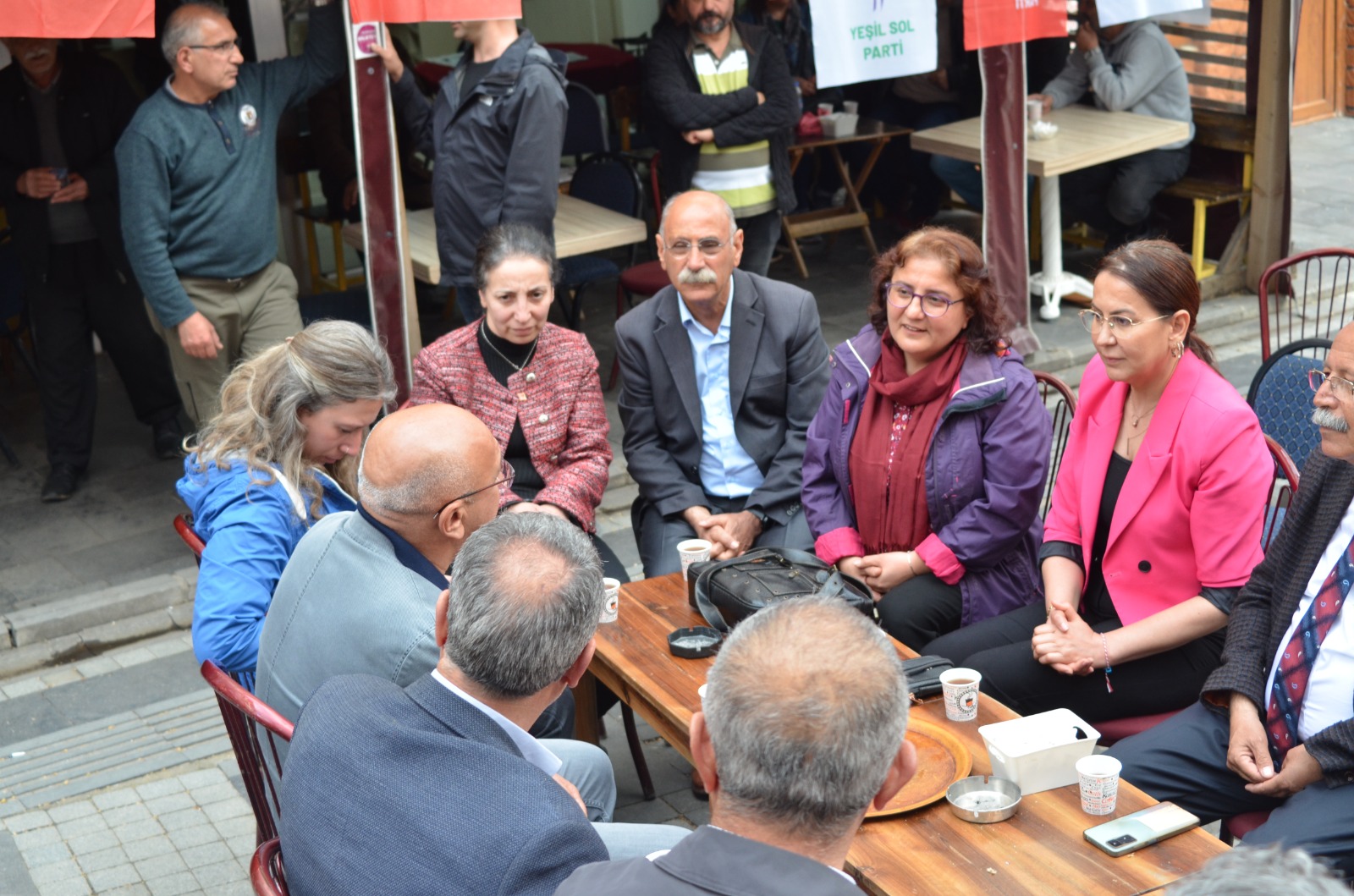 CHP adayı Hüsniye Karakoyun, Yeşil Sol Parti adayı Ayten Kordu'yu seçim bürosunda ziyaret ederek başarılar diledi.