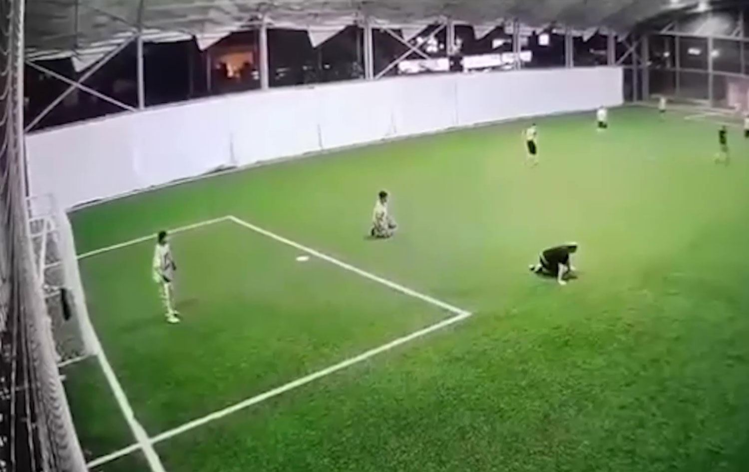 Olay, halı sahanın güvenlik kamerasınca kaydedildi.