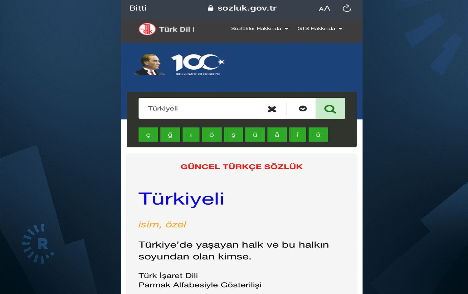 "Türkiyeli" sözcüğü, internet sitesindeki sözlükte birkaç saat kaldı.