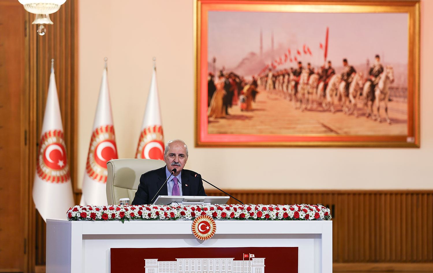 Haber Merkezi – Türkiye Büyük Millet Meclisi’nde (TBMM) oluşturulan Milli Dayanışma, Kardeşlik ve Demokrasi Komisyonu, TBMM Başkanı Numan Kurtulmuş’un başkanlığında beşinci kez toplandı. Kurtulmuş, toplantının açılışında yaptığı konuşmada, İYİ Parti Ankara Milletvekili Yüksel Aslan’ın sosyal medya hesabından DEM Parti’ye ilişkin yaptığı paylaşımları isim vermeden eleştirdi.