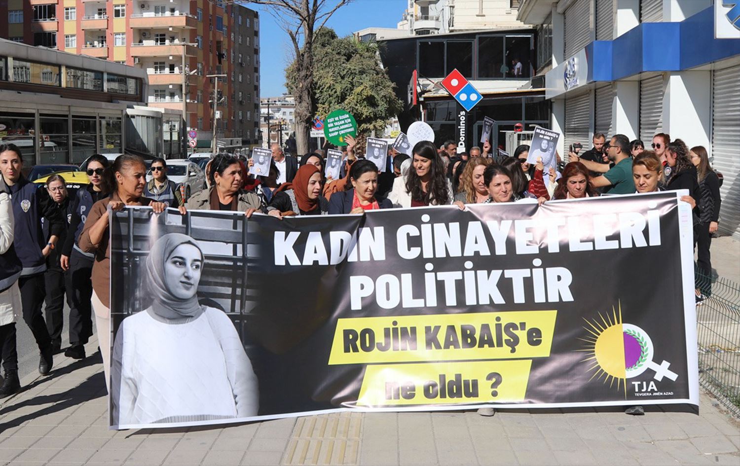 Mardin’in Kızıltepe kavşağında bir araya gelen kadınlar, "Kadın cinayetleri politiktir! Rojin'e ne oldu?" pankartıyla yürüyüş başlattı. Rojın Kabaiş’in fotoğraflarını taşıyan kadınlar sık sık "Jin, jiyan, azadî", "Kuştina jinan polîtîk e" ve "Susmuyoruz, korkmuyoruz, itaat etmiyoruz" sloganlarını attı.