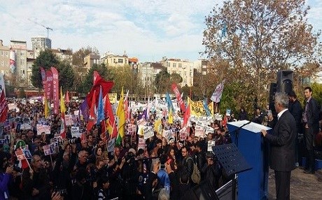 Mitingte konuşan HDP İstanbul İl Eşbaşkanı Doğan Erbaş, parti bileşenleriyle yaptıkları toplantılar sonrasında TBMM'de daha etkin, daha fazla yer alma kararı aldıklarını açıkladı.