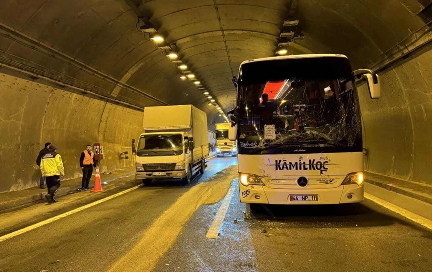 Otoyolun İstanbul istikameti Korutepe Tüneli mevkisinde 2 otobüs ve 1 tırın karıştığı zincirleme trafik kazası meydana geldi.
