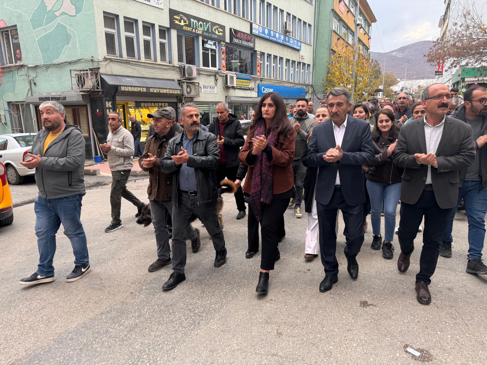 Açıklamanın ardından Dersim Belediyesi Eşbaşkanı Cevdet Konak, STK, siyasi partiler ve çok sayıda vatandaş, çarşı merkezinde yürüyüşe geçerek vatandaşlardan destek istedi.