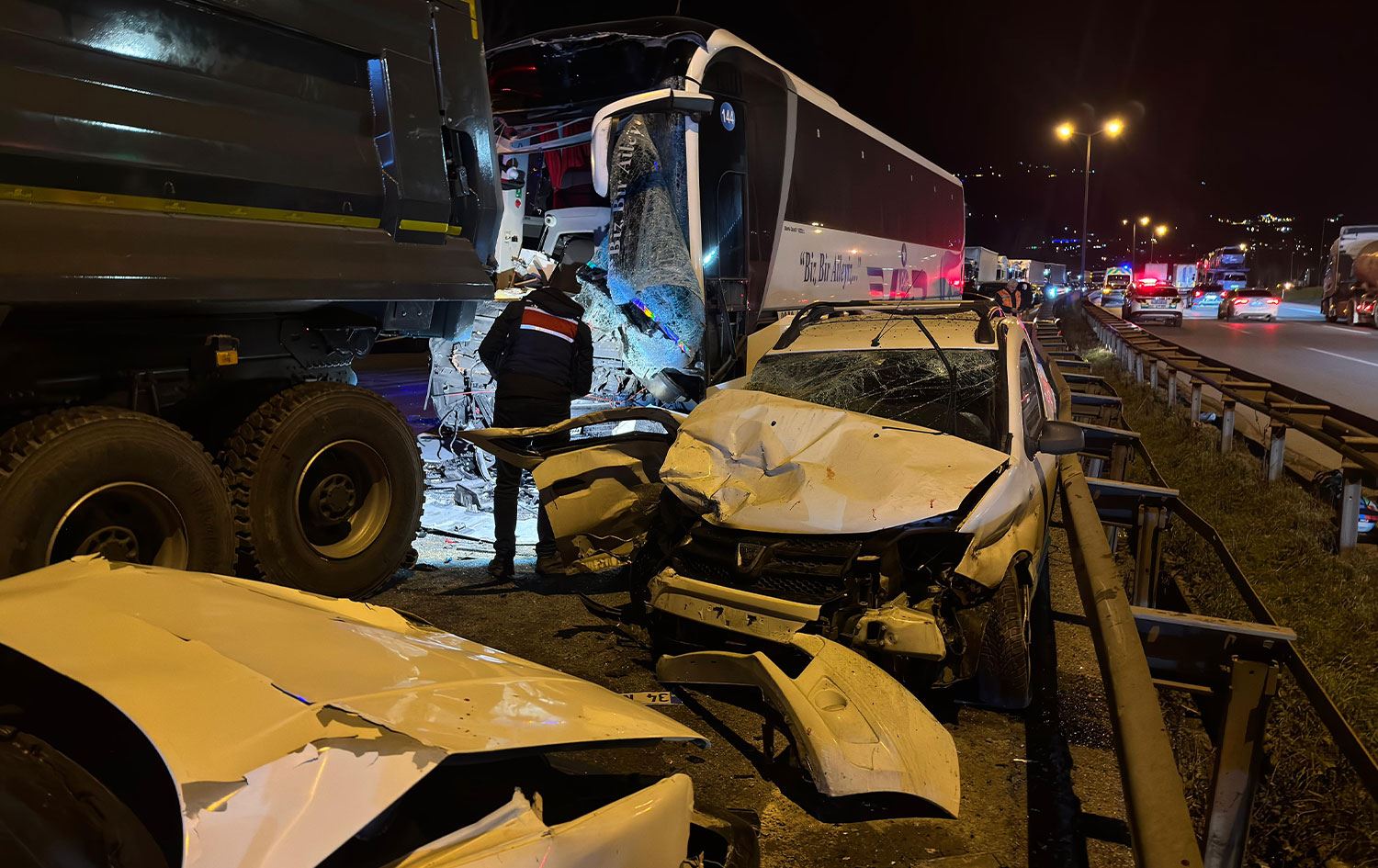 Haber Merkezi – Sakarya’nın Sapanca ilçesinde, yolcu otobüsü, hafriyat kamyonu ve iki otomobilin karıştığı zincirleme kazasında 1 kişi öldü, 3'ü ağır 27 kişi yaralandı.