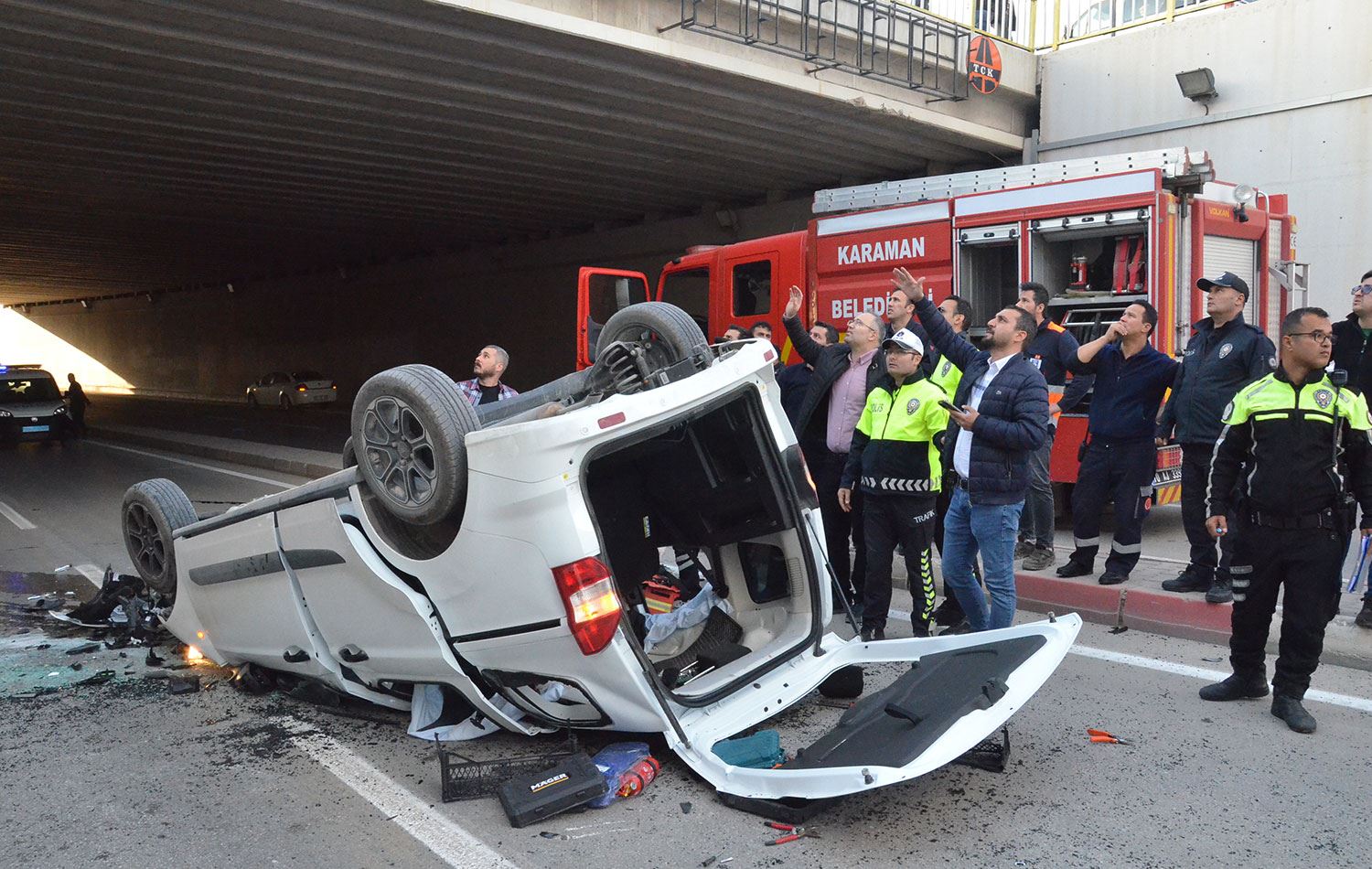 Haber Merkezi - Karaman'da üst geçitten düşen hafif ticari araçtaki 2 kişi öldü, 1 kişi yaralandı.