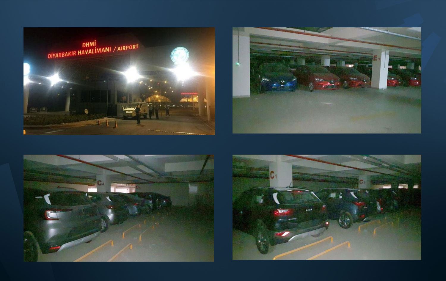 Diyarbakır Havalimanı otoparkında, eksi 1’inci katta plakasız ve ambalajları üzerinde onlarca sıfır otomobil park halinde görüntülendi.