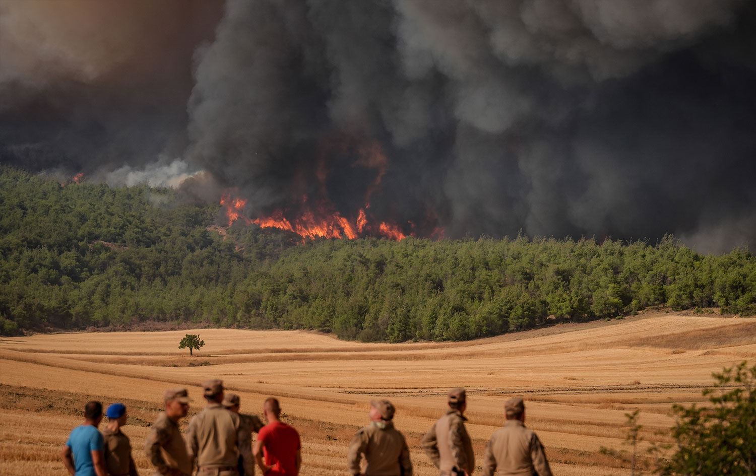 Ayrıca 100'ün üzerinde bölge sakini traktörleriyle yangının ilerleyişini durdurmak ve ekiplere destek olmak için tarlalarını sürüyor.