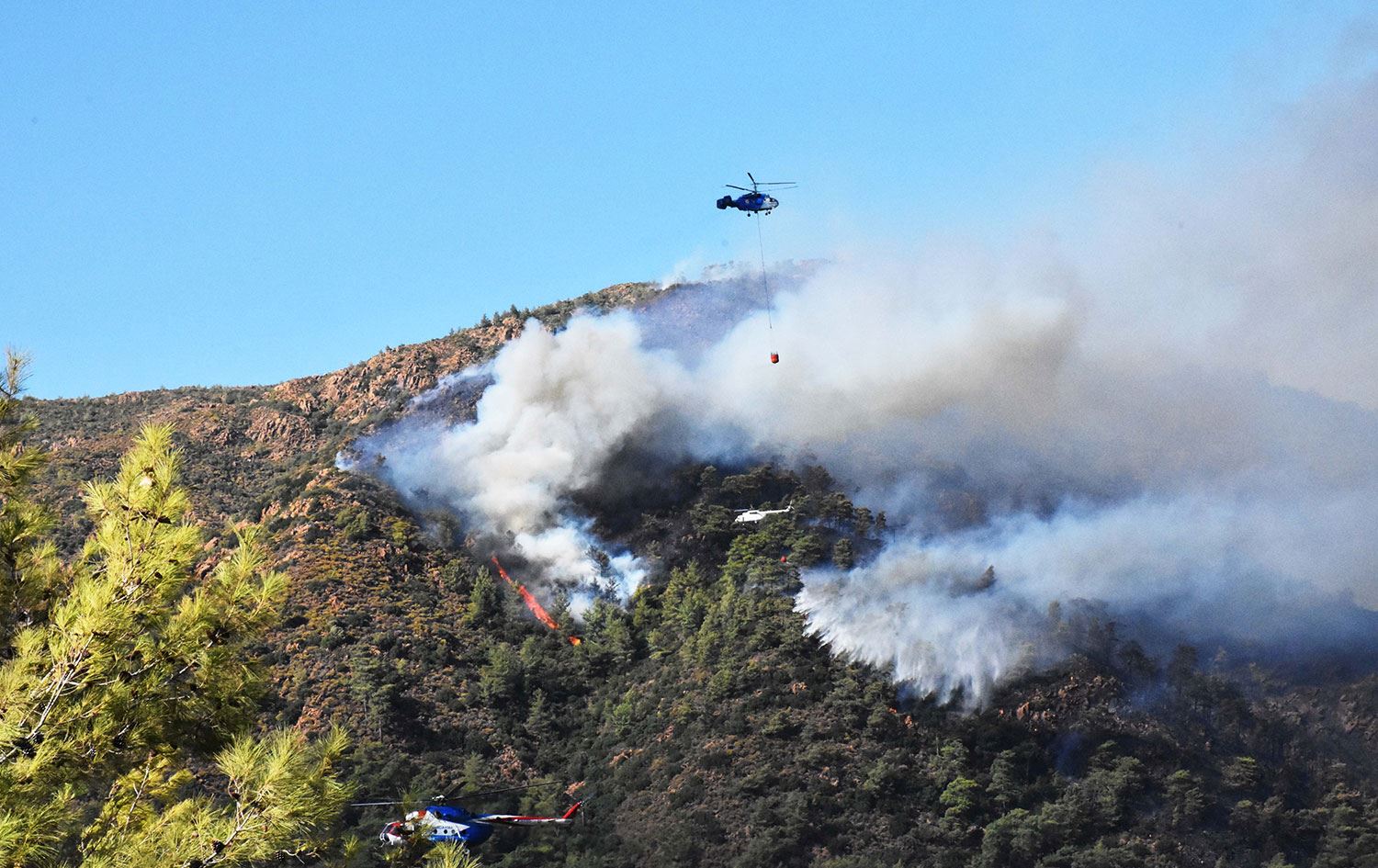 Bu arada yangın söndürme çalışmalarına destek için giden Rusya'ya ait yangın söndürme helikopterinin Denizli'nin Çardak ilçesi yakınlarında düşmesi sonucu 2 kişi öldü, 5 kişi de yaralandı.