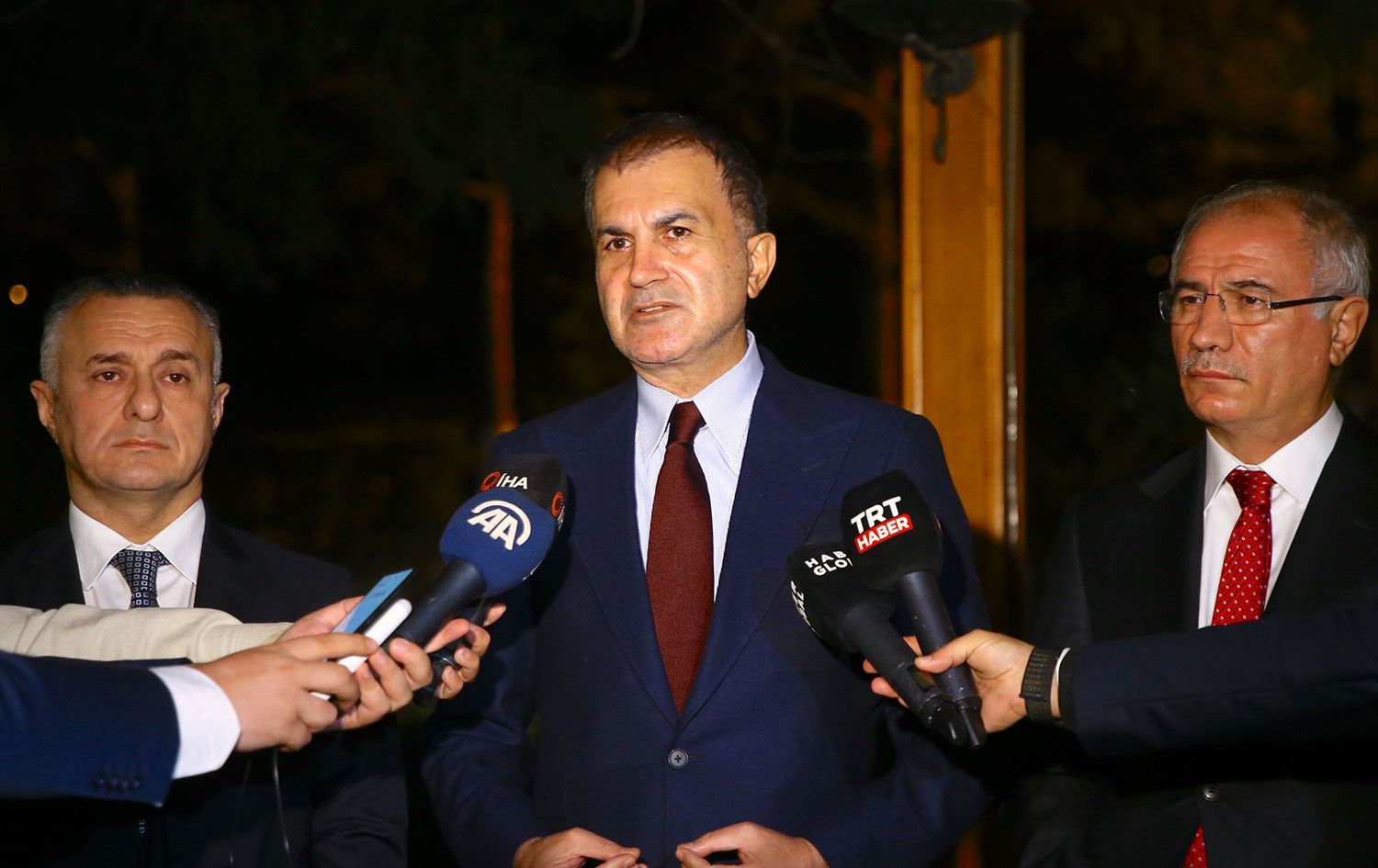 "Buradaki doktorlarımız durumun stabil olduğunu, 'buradan ayrılabilirsiniz' derlerse o şekilde ambulans uçakla birlikte Türkiye'ye geçeceğiz. Ama derlerse ki 'biraz daha gözetim altında bulunması gerekiyor hastalarımızın' o zaman tabii ki buradaki doktorlarımızın tavsiyesine uyacağız. Sayın bakanımızla da değerlendirme yaptık. Durumları gayet iyi Allah'a şükür. Ciddi bir sıkıntı gözükmüyor ama tabii ki sabaha kadar gözetim altında tutmak istiyorlar. İhtiyaten bunu yapmak istiyorlar. Doktorlarımızın tavsiyelerine uyacağız. Biraz evvel Sayın Cumhurbaşkanımıza bilgi verdik. Efkan Bey'le birlikte Binali bey ve Şamil bey iyileşene kadar burada kalacağız. İnşallah onlarla beraber en kısa zamanda döneceğiz."