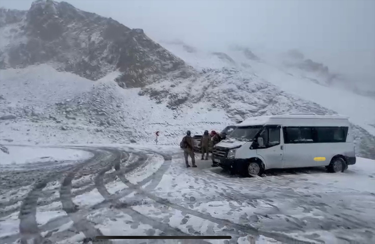 Van-Bahçesaray kara yolunun 2 bin 985 rakımlı Karabet (Kirapêt) Geçidi'nde başlayan kar, sürücülere zor anlar yaşattı.