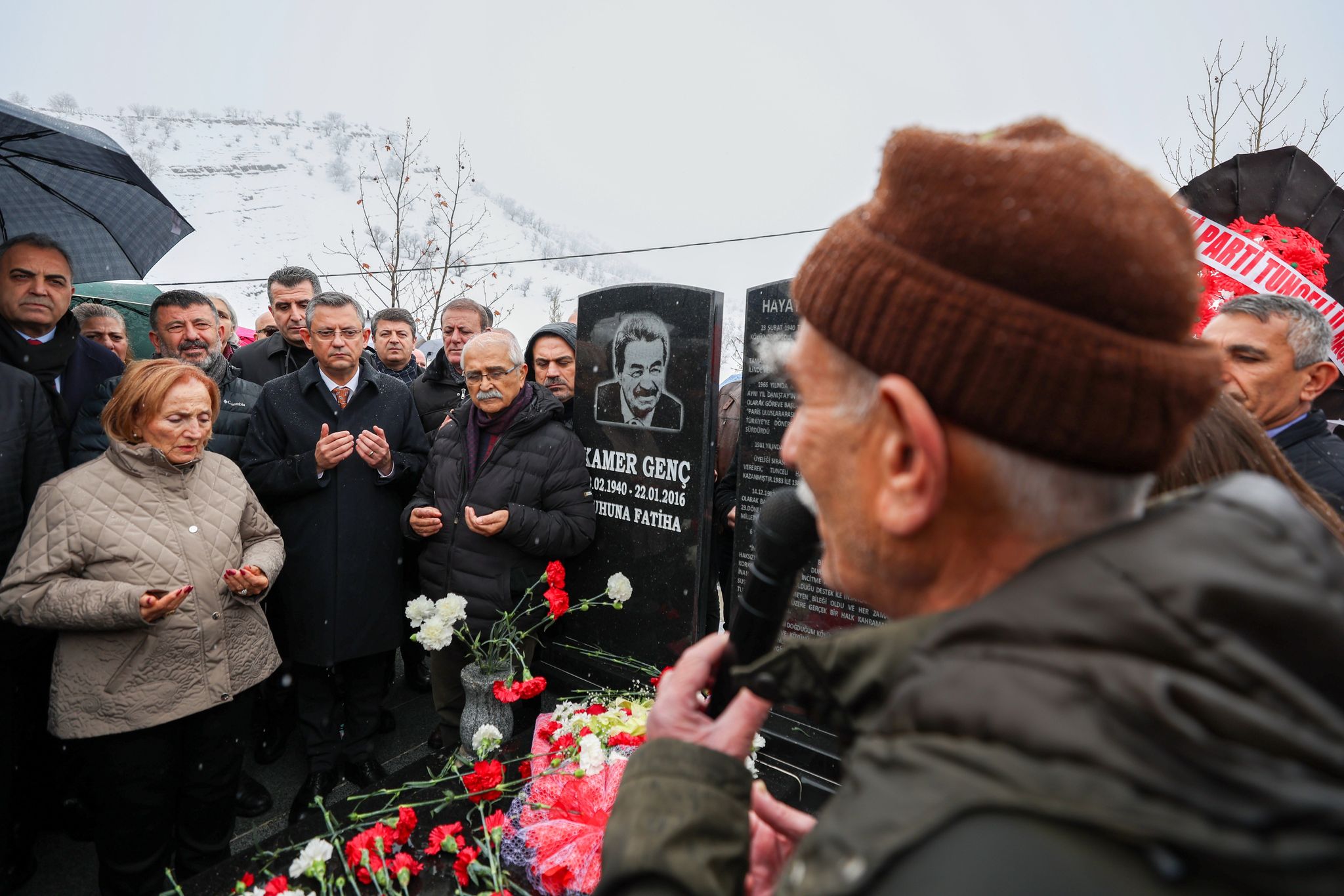 Kamer Genç'i yitirdikleri günden bu yana yapılan tüm anmalara katıldığını hatırlatan CHP Genel Başkanı Özgür Özel, "Bugün 8. kez aynı tarihte, aynı günde buradayız. Ve hangi makamda, hangi mevkide, hangi görevde olursak olalım yine kendisinin ölüm yıldönümünde Allah sağlık verdikçe, bir başka engel olmadıkça burada olacağız. Ben, son 9 yıldır 22 Ocak günlerinde Veli Ağbaba, Nurettin Demir ve Sevim abla ile buradayım. Bundan öncekilerde CHP milletvekili ve CHP grup başkan vekili sıfatıyla buradaydım. Bugün partinin genel başkanı olarak buradayım. Böyle günlerde burada genel başkanın varlığı bütün CHP'lilerin varlığı demektir. Ben, bugün partiye yeni kaydolmuş 18 yaşını yeni doldurmuş üyesinden en kıdemlisi 100 yaşındaki üyesine kadar Kamer Genç'in ailesine taziyelerini, iyi dileklerini iletmek ve tarih önünde en haklımız Kamer Genç'in mezarı başından bütün Türkiye'ye bir daha seslenmek için buradayım" diye konuştu.
