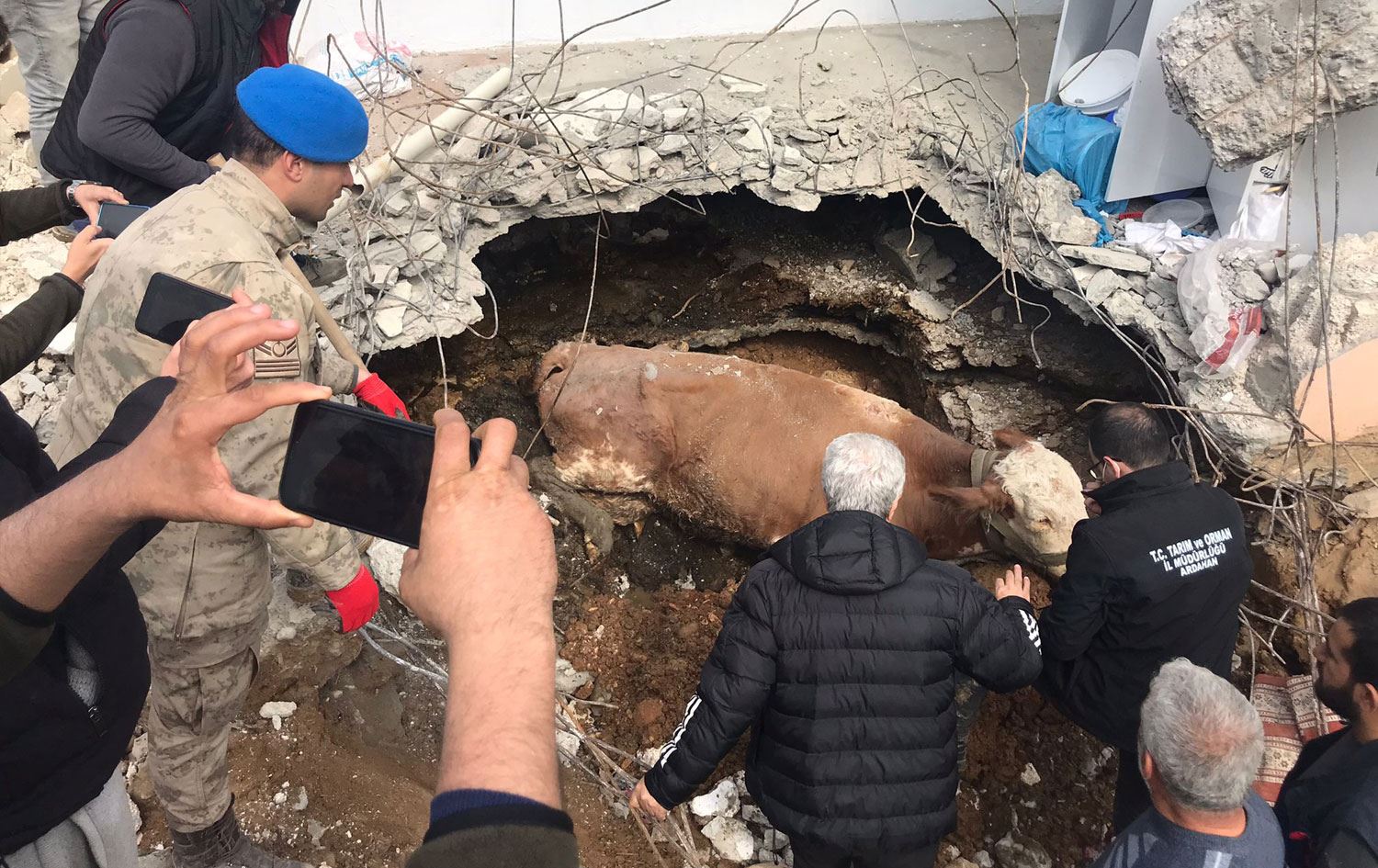 Haber Merkezi - Maraş merkezli depremlerde büyük hasar gören Adıyaman'da enkaz altında kalan ve telef olduğu düşünülen inek, depremin 15'inci gününde kurtarıldı.