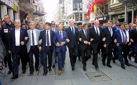 Haber Merkezi – İstanbul’da bulunan yabancı konsoloslar, saldırılara karşı Beyoğlu’nda yürüdü.