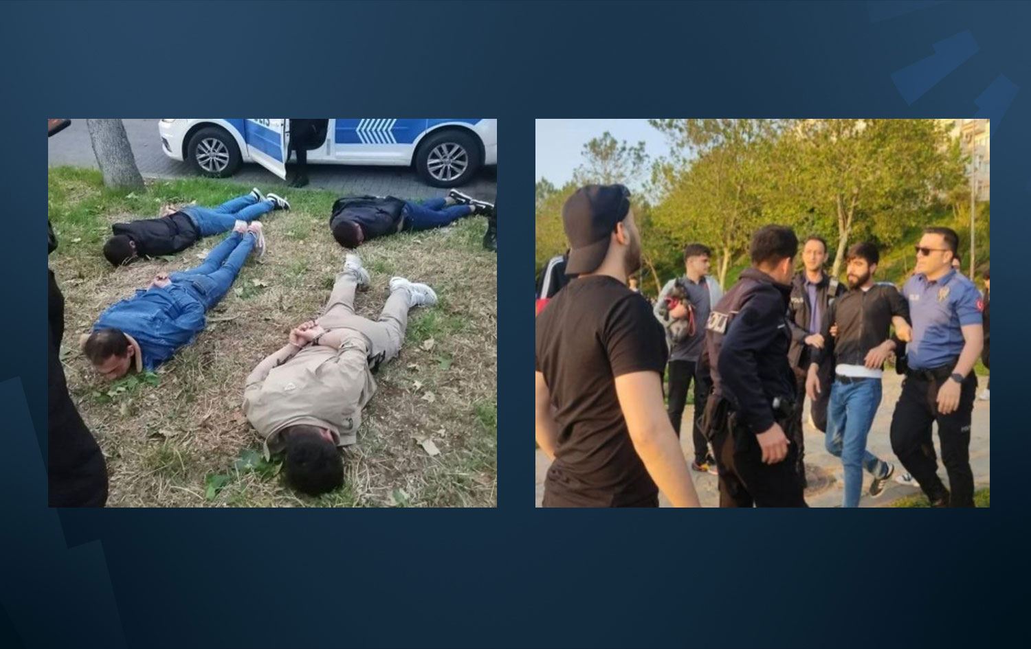 Daha sonra Twitter üzerinden gözaltına alınan ve ters kelepçeli bir şekilde yüz üstü yatırılmış gençlerin görüntüleri paylaşıldı. Görüntülerde polis arabasından da Mehter Marşı’nın çaldığı görüldü.