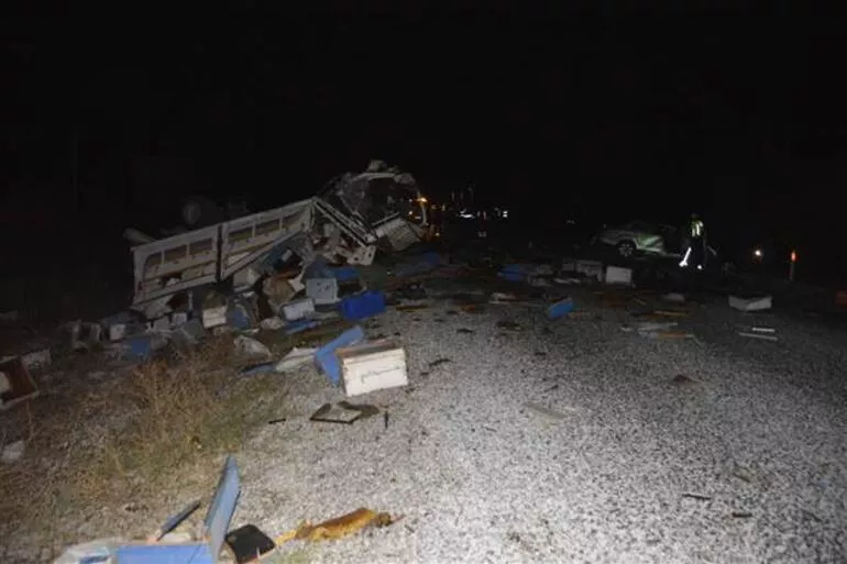 Fethiye'den Antalya'nın Korkuteli ilçesine giden Süleyman Kılınç'ın kullandığı 07 ACK 674 plakalı otomobil, hatalı sollama nedeniyle karşıdan gelen Süleyman Sazboğaz (64) yönetimindeki 07 PY 619 plakalı arı yüklü kamyona çarptı.