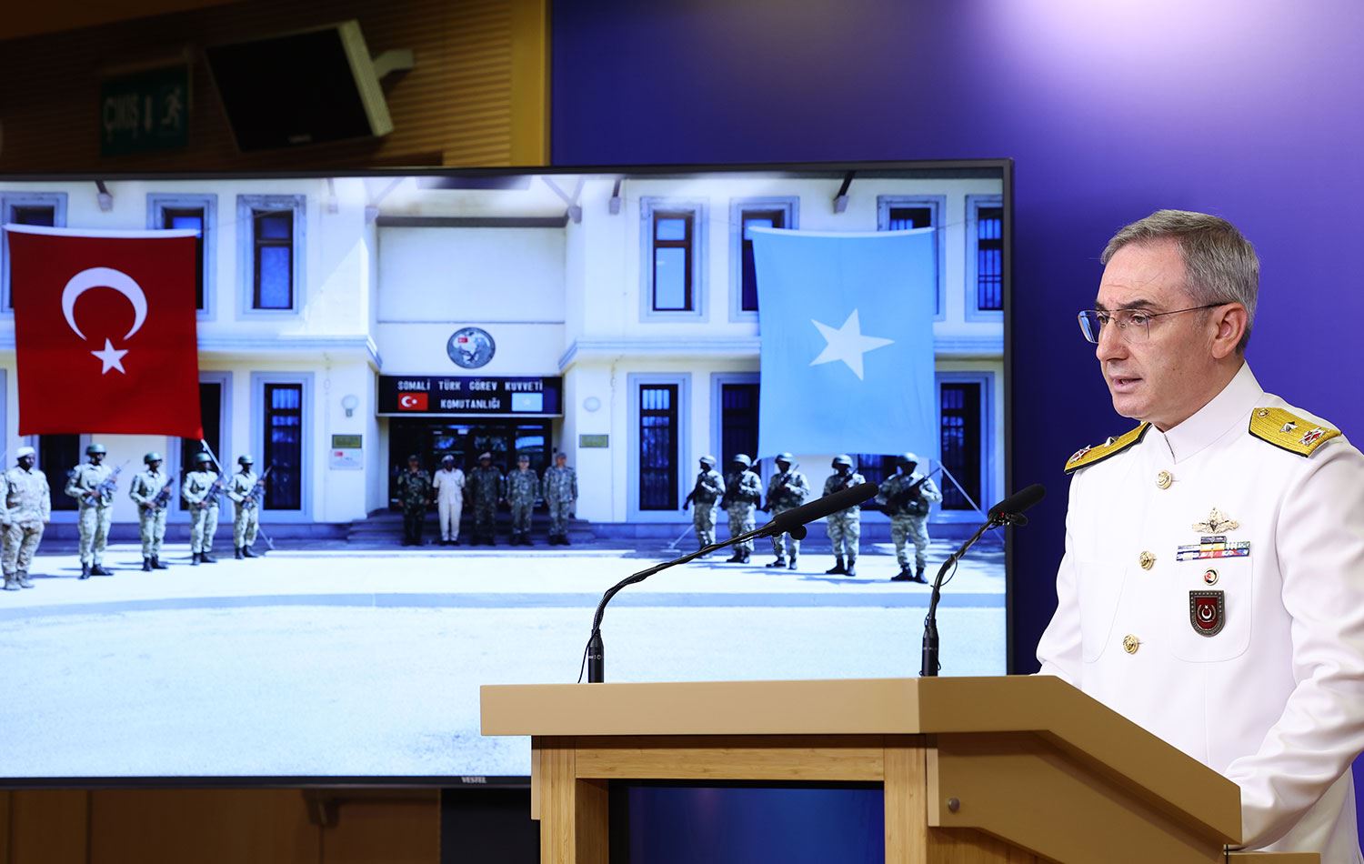 Basın ve Halkla İlişkiler Müşaviri Tuğamiral Zeki Aktürk, Bakanlıkta düzenlediği basın bilgilendirme toplantısında açıklamalarda bulundu. / AA