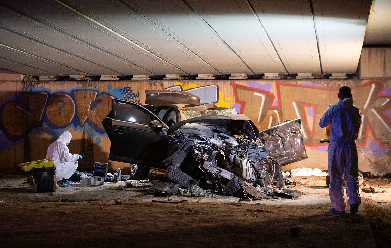 Merkez Mahallesi Mehmet Akif Caddesi'nde Güngören istikametinde seyreden, sürücüsünün kimliği öğrenilemeyen 34 EPG 224 plakalı otomobil, tramvay köprüsünün duvarına çarptı.