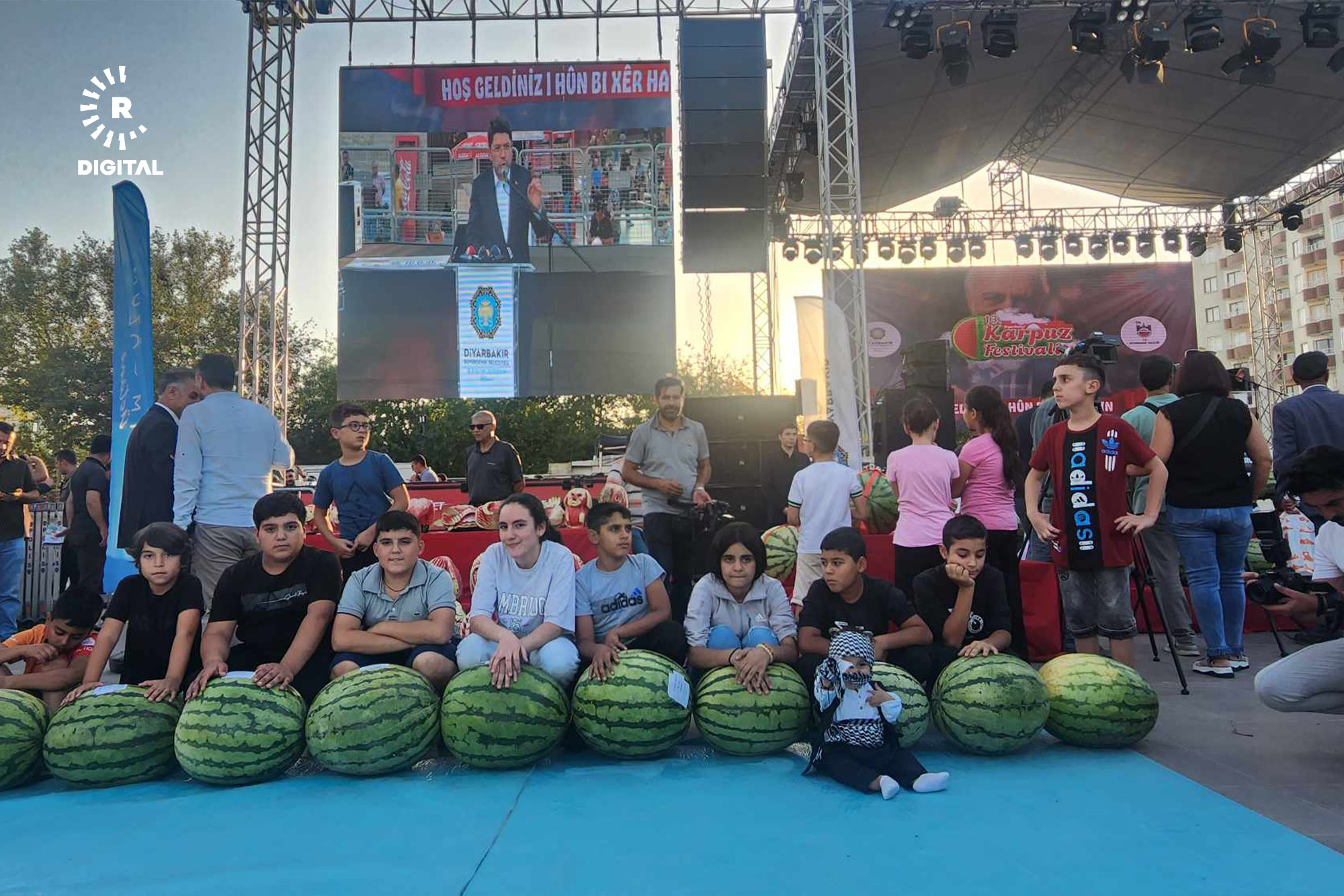 Develerle taşınan ve kılıçlarla kesilen coğrafi tescil işaretli Diyarbakır Karpuzunun tanıtılması amacıyla bu yıl 13’ncüsü düzenlenen festival kapsamında lise öğrencileri arasında karpuz yeme, 8-15 yaş grubu çocuklara arasında yapılacak karpuz yuvarlama yarışmaları yapıldı.